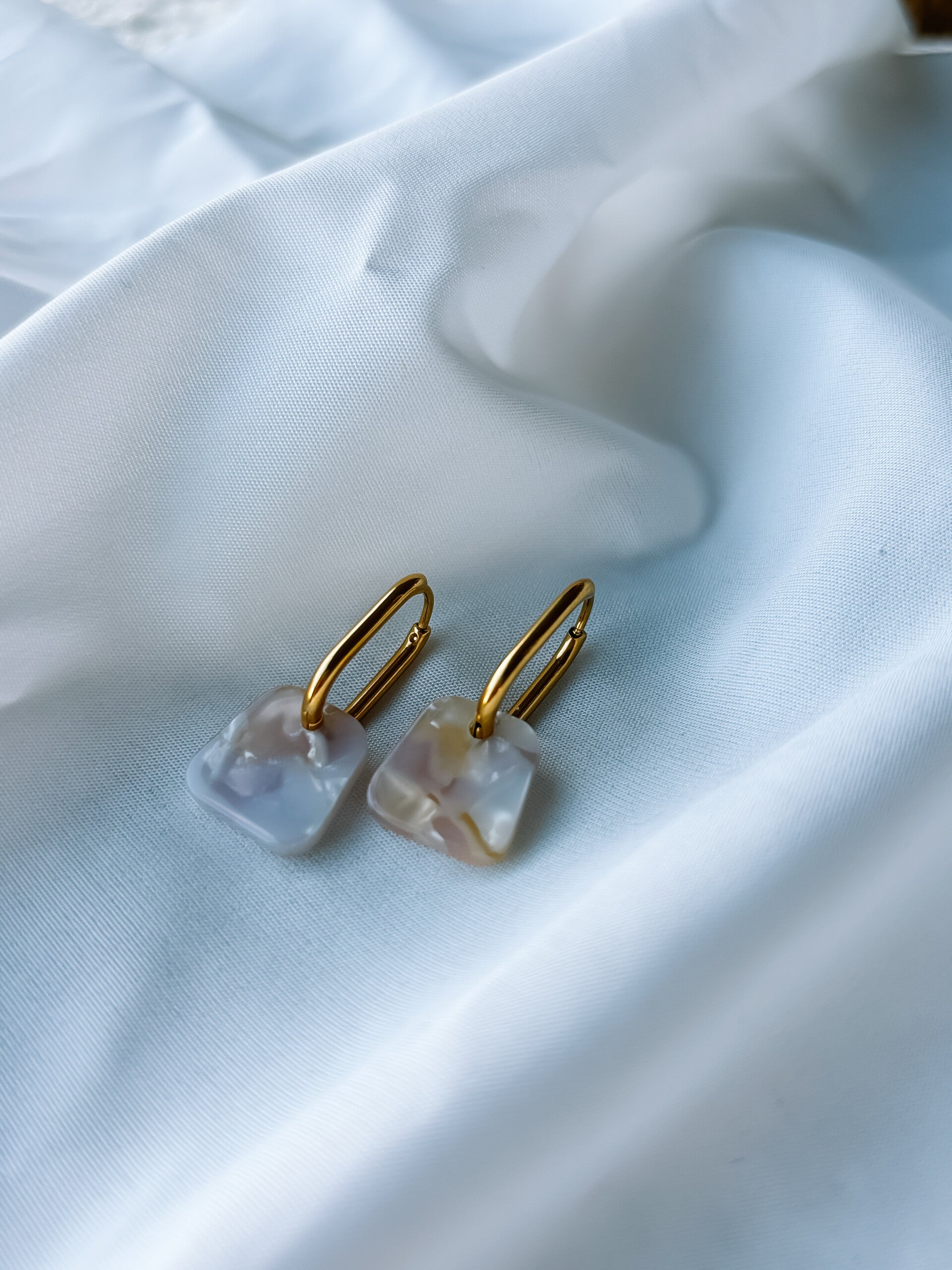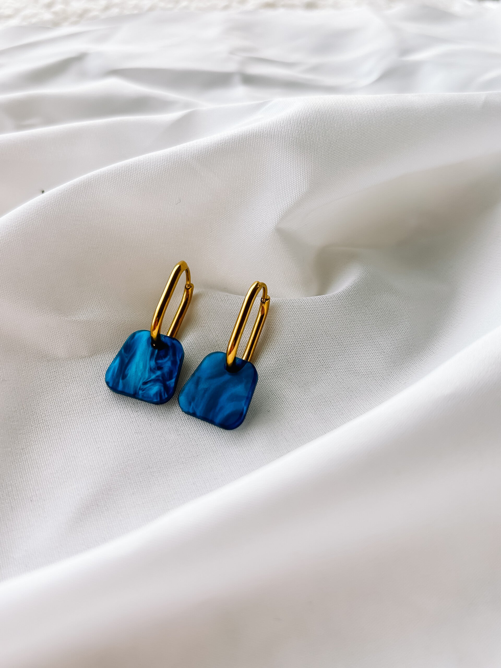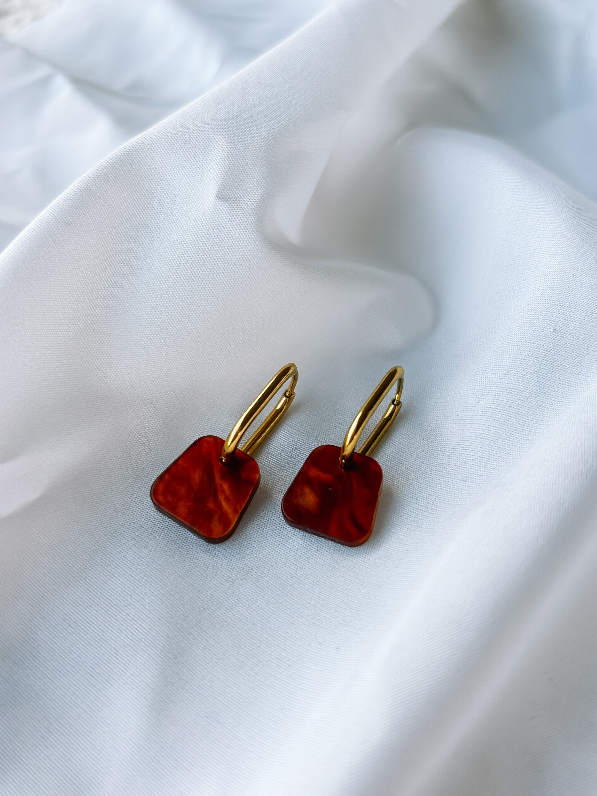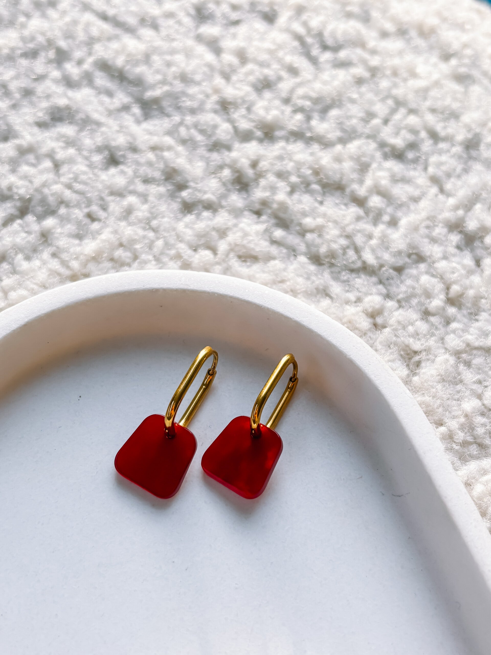 standaard geleverd met de rechthoekige oorringen zoals afgebeeld op de foto. Liever ronde oorringen? vermeld dit in de opmerkingen.